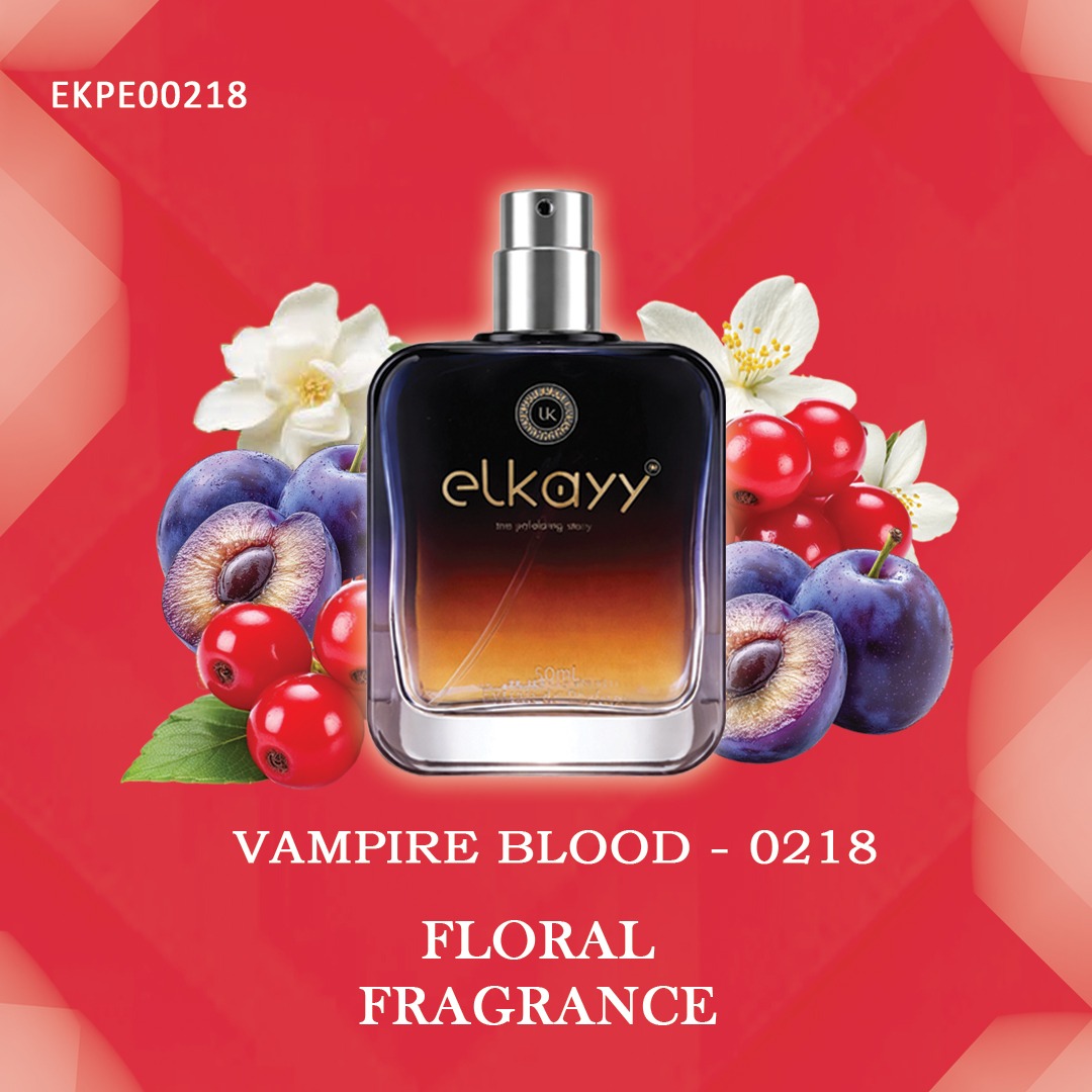 Vampire Blood 0218 Perfume is a rich fruity gourmand fragrance for men and women, crafted for a sweet, bold, and long-lasting scent experience. It blends dark berries with juicy fruits, soft florals, and warm musky undertones, creating a vibrant, seductive, and slightly mysterious fragrance profile.