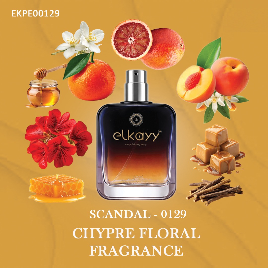 Scandal 0129 is a long-lasting oriental woody perfume with sweet, warm, and bold notes, designed for a seductive and attention-grabbing fragrance experience.